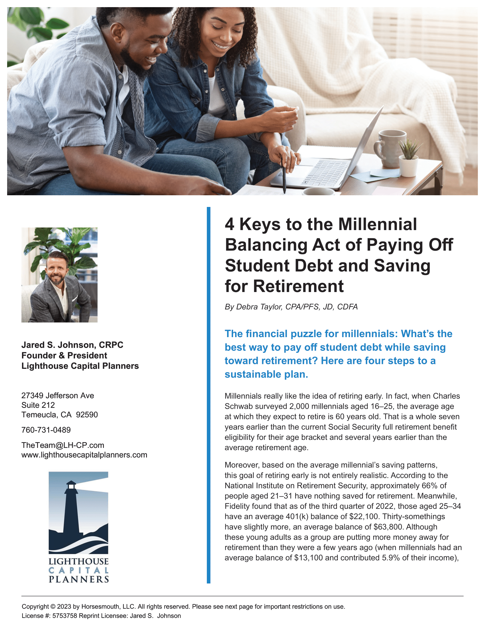 4 Keys to the Millennial Balancing Act of Paying Off Student Debt and Saving for Retirement